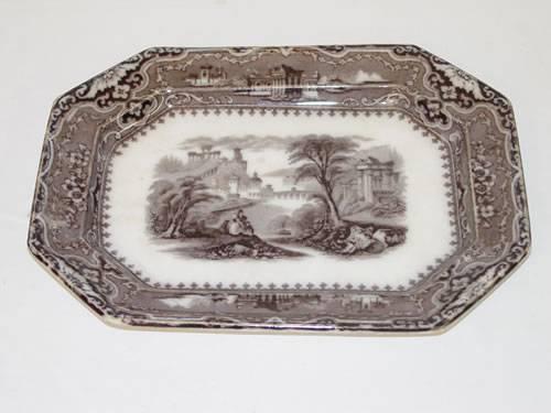 12" MULBERRY PLATTER-VINCINNES PATTERN BY ALCOCK - STAINS & WEAR;