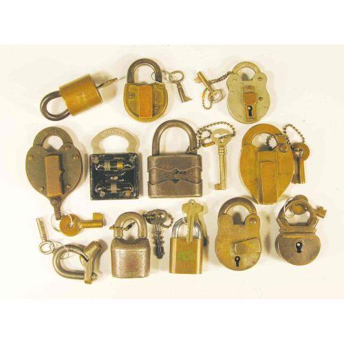 12 Misc. Padlocks including T. Slaight, Eagle Barrel and Hobibs and Co. Various sizes and conditions, all but one have keys.