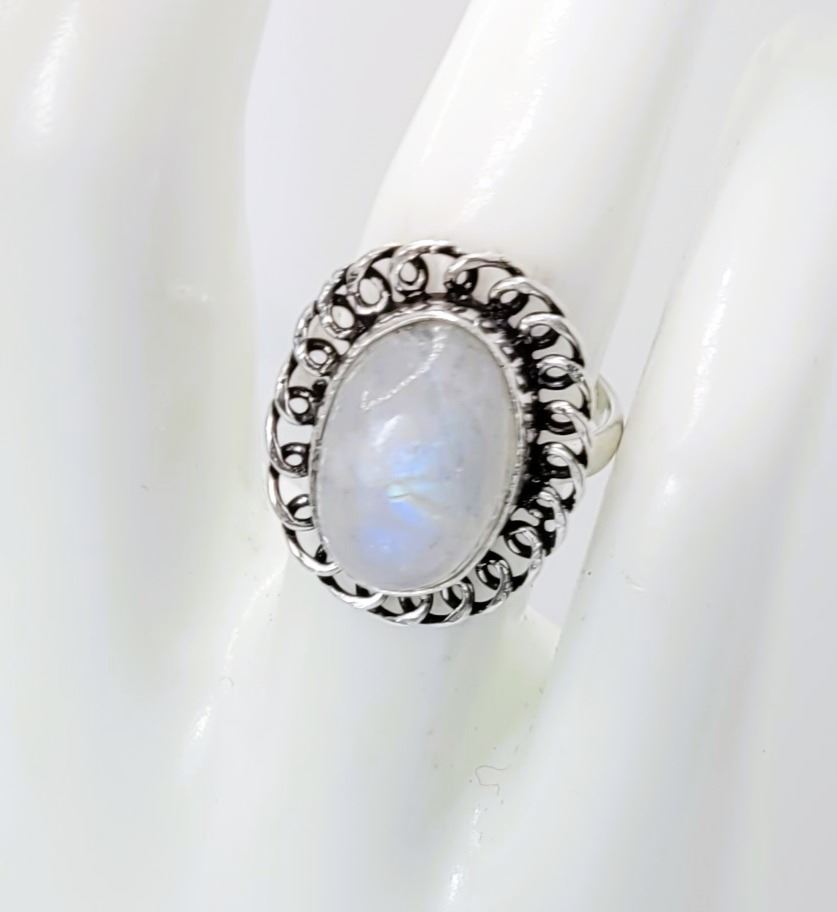 12) NATURAL OVAL MOONSTONE RING, SET IN 925