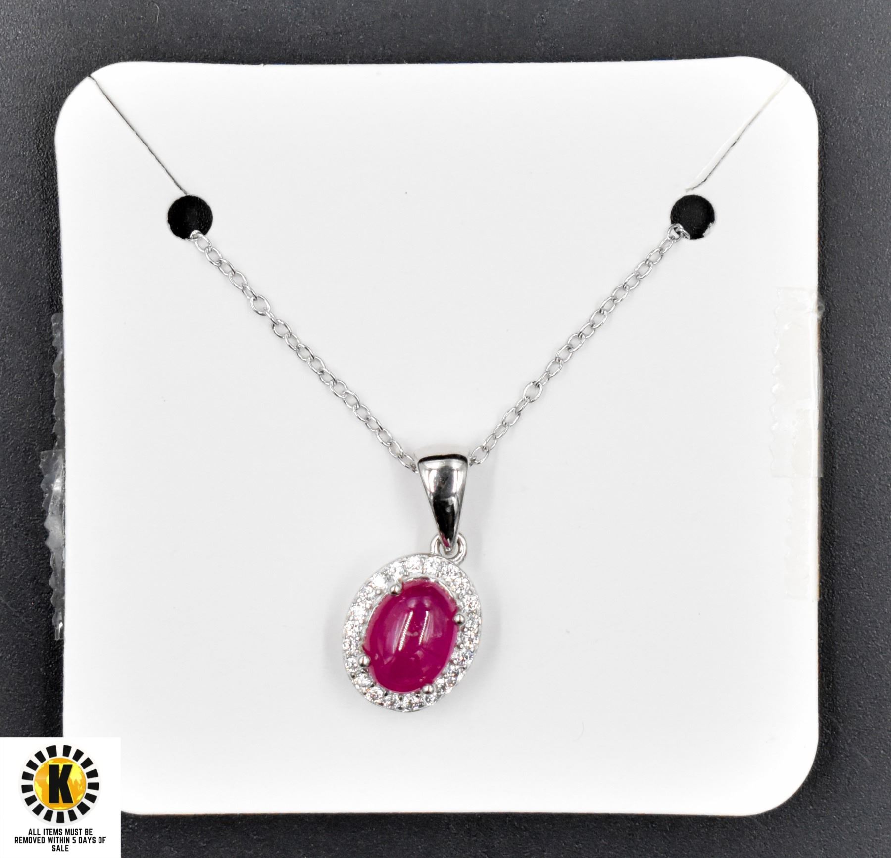 #12-NATURAL RED RUBY 6 X 7.8 , CZ PENDANT NECKLAC