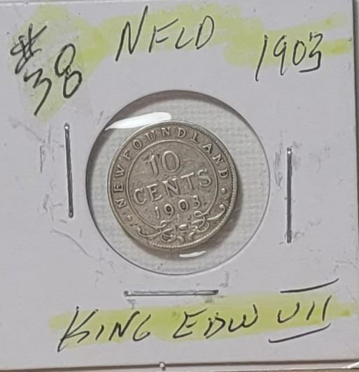 12) NEWFOUNDLAND 1903 DIME, 92.5% SILVER.