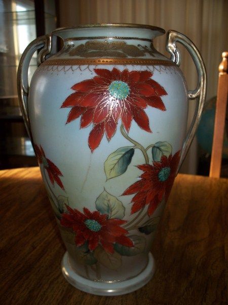 12" NIPPON VASE W/POINSETTIA TYPE FLOWERS