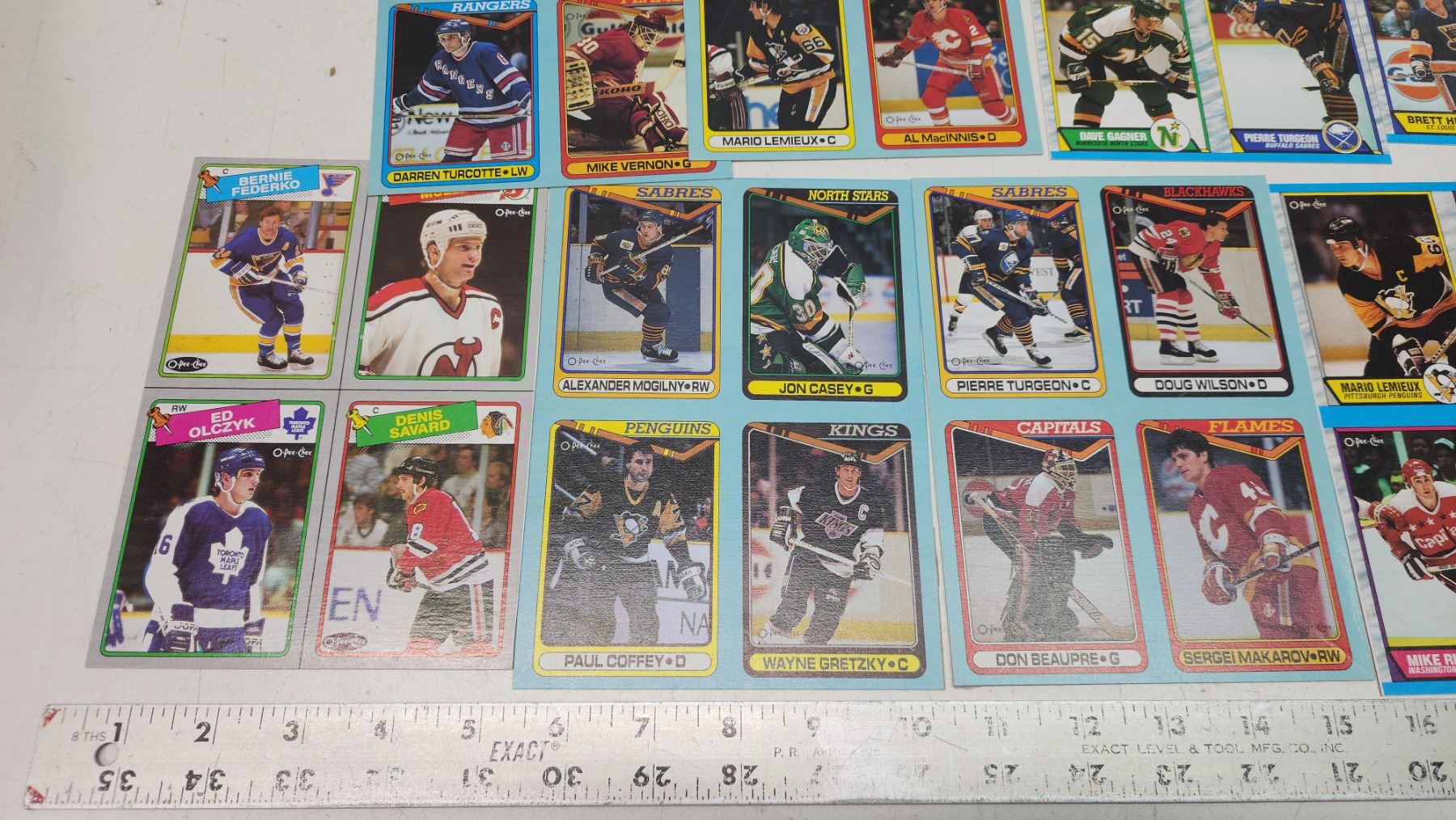 12 - OPC, Topps box bottoms, neatly sheared, 4 Gretzky