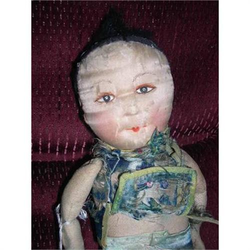 12" Oriental Cloth with Silk Face as is. She has seen better days but what a sweet face. She has clothing that is falling apart. There is green stain on the arms. Some of the black yarn is missing. She is a fixer upper and is sold as is. Doll comes from a smoke free environment. Buyer to pay $10 for shipping, handling, and insurance. Thanks for viewing.
