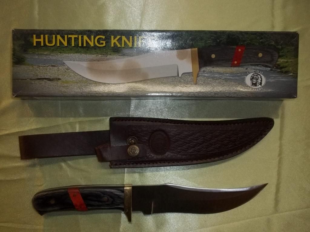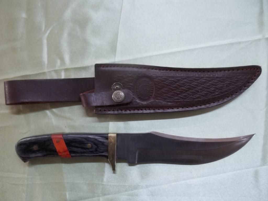 Surgical Steel Blade, Brass Bolster, Black Color Pakkawood Handle, Leather Sheath
