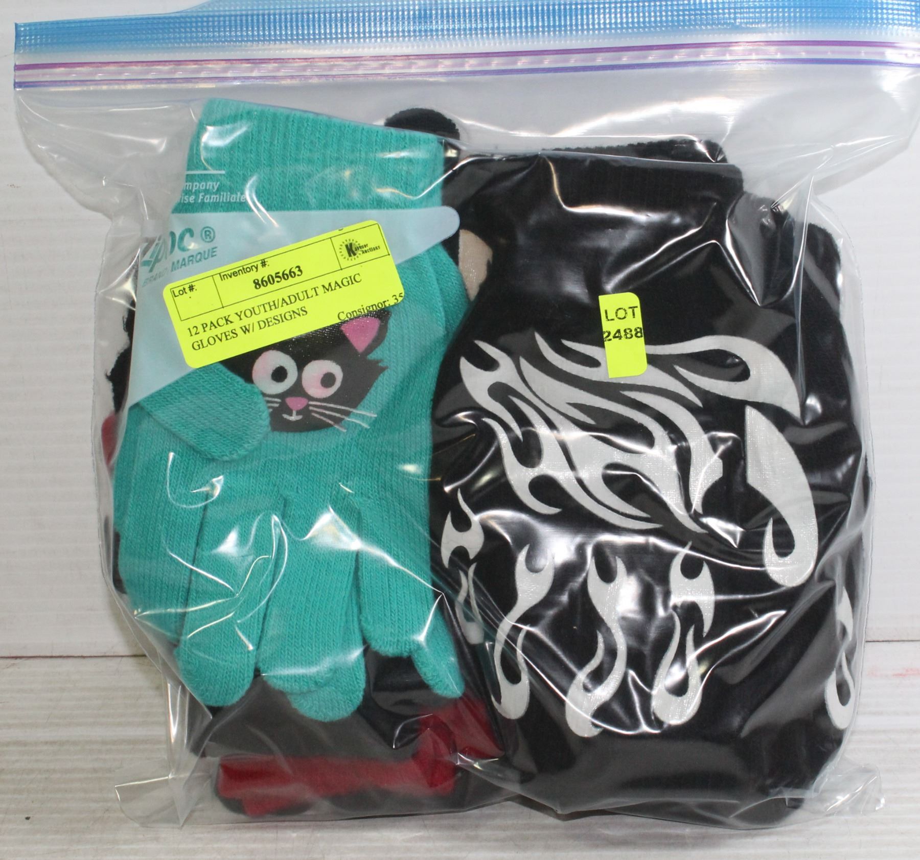 12 PACK YOUTH/ADULT MAGIC GLOVES W/ DESIGNS