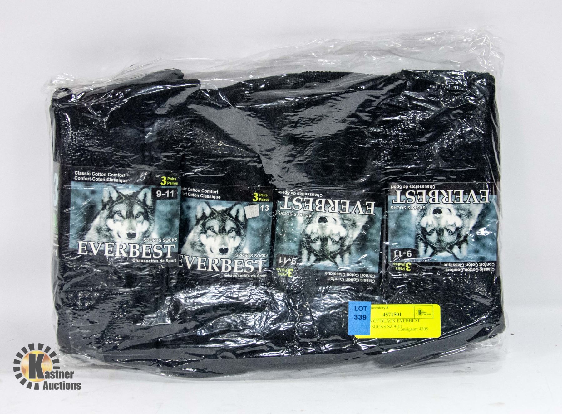 12 PAIRS OF BLACK EVERBEST SPORTS SOCKS SZ 9-11