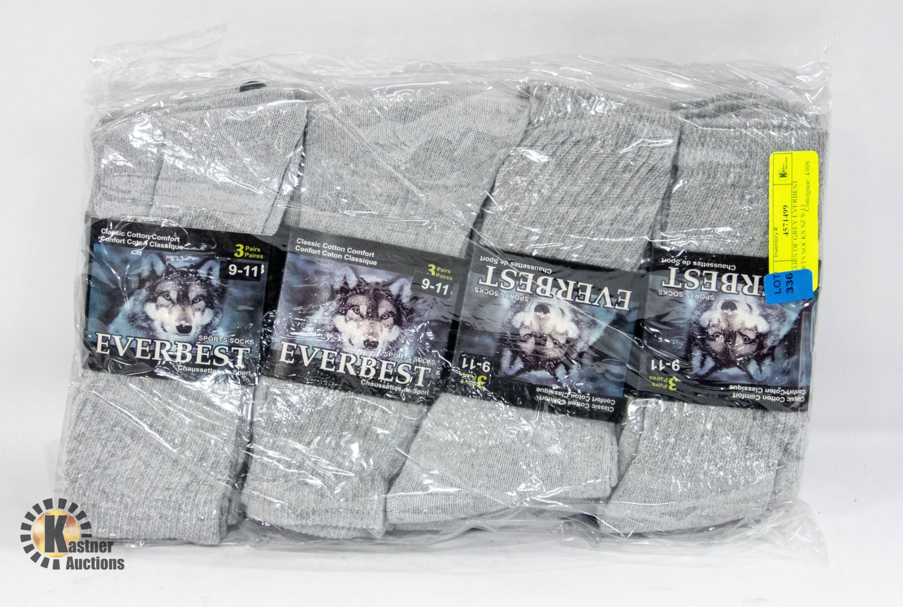 12 PAIRS OF GREY EVERBEST SPORTS SOCKS SZ 9-11