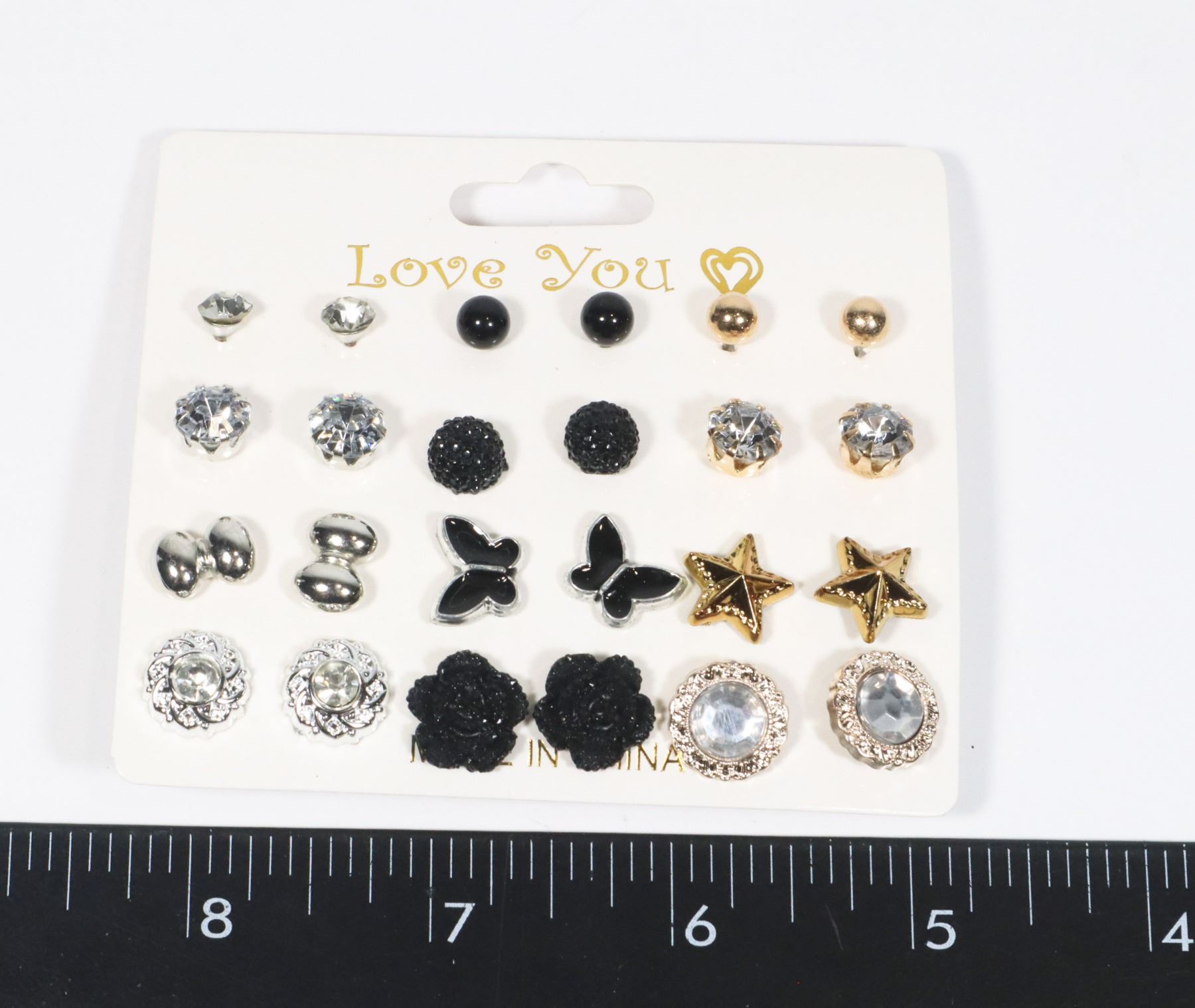 12 PAIRS STUD EARRINGS INCLUDES BUTTERFLIES,