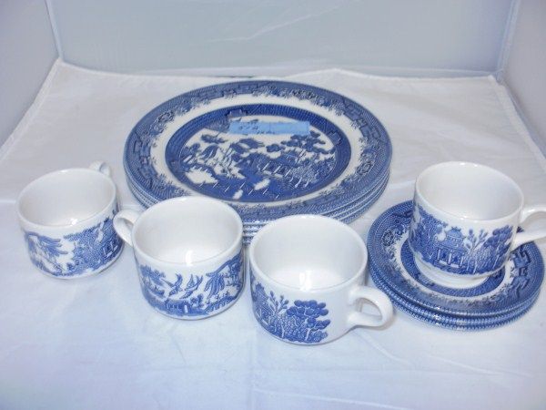 12 PC. CHURCHILL ENGLAND BLUE WILLOW CHINA