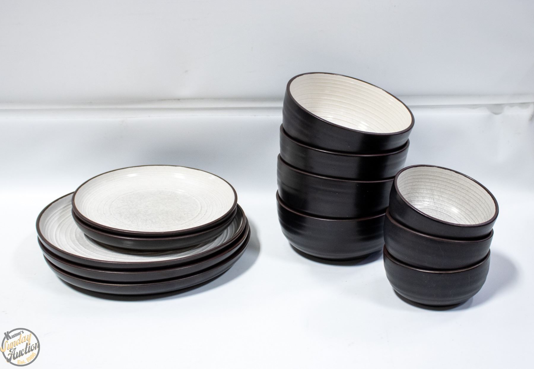 BLACK, 3 DINNER PLATES, 2 SIDE PLATES, 3 SOUP BOWLS, 4 CEREAL BOWLS, CTC SES, MINIMAL SIGNS OF USE **ALL ITEMS MUST BE REMOVED BY 5PM SATURDAY, MAY 2ND 2026. ALL REMAINING ITEMS WILL BE SUBJECT TO A $6.00 PER DAY STORAGE CHARGE. ANY ITEMS REMAINING AFTER MONDAY, MAY 18TH 2026 WILL BE CONSIDERED FORFEITED. NO REFUNDS WILL BE ISSUED FOR FORFEITED ITEMS. TO SCHEDULE A PICK UP APPOINTMENT CLICK HERE