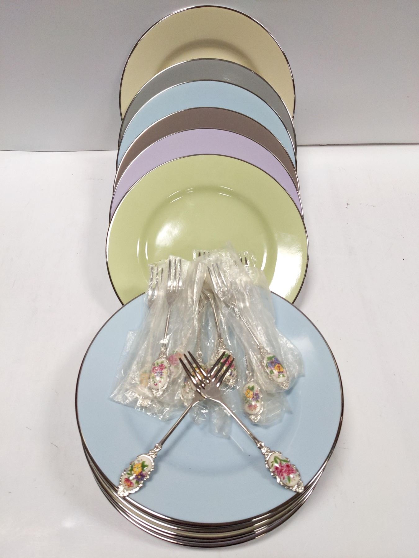 12 PIECE PLATE SET/ W 12 MATCHING ORDERVE FORKS