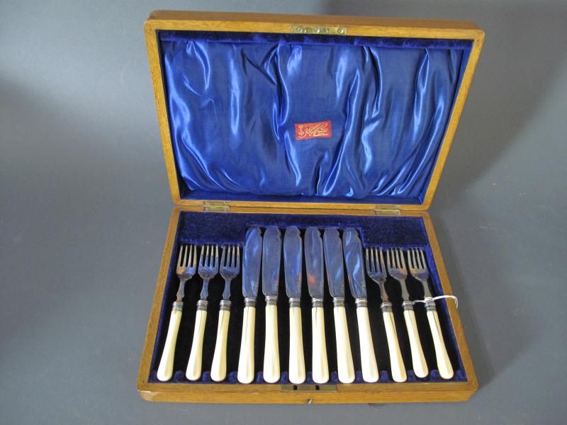 - includes six knives and six forks with sterling silver cuff in gifted case