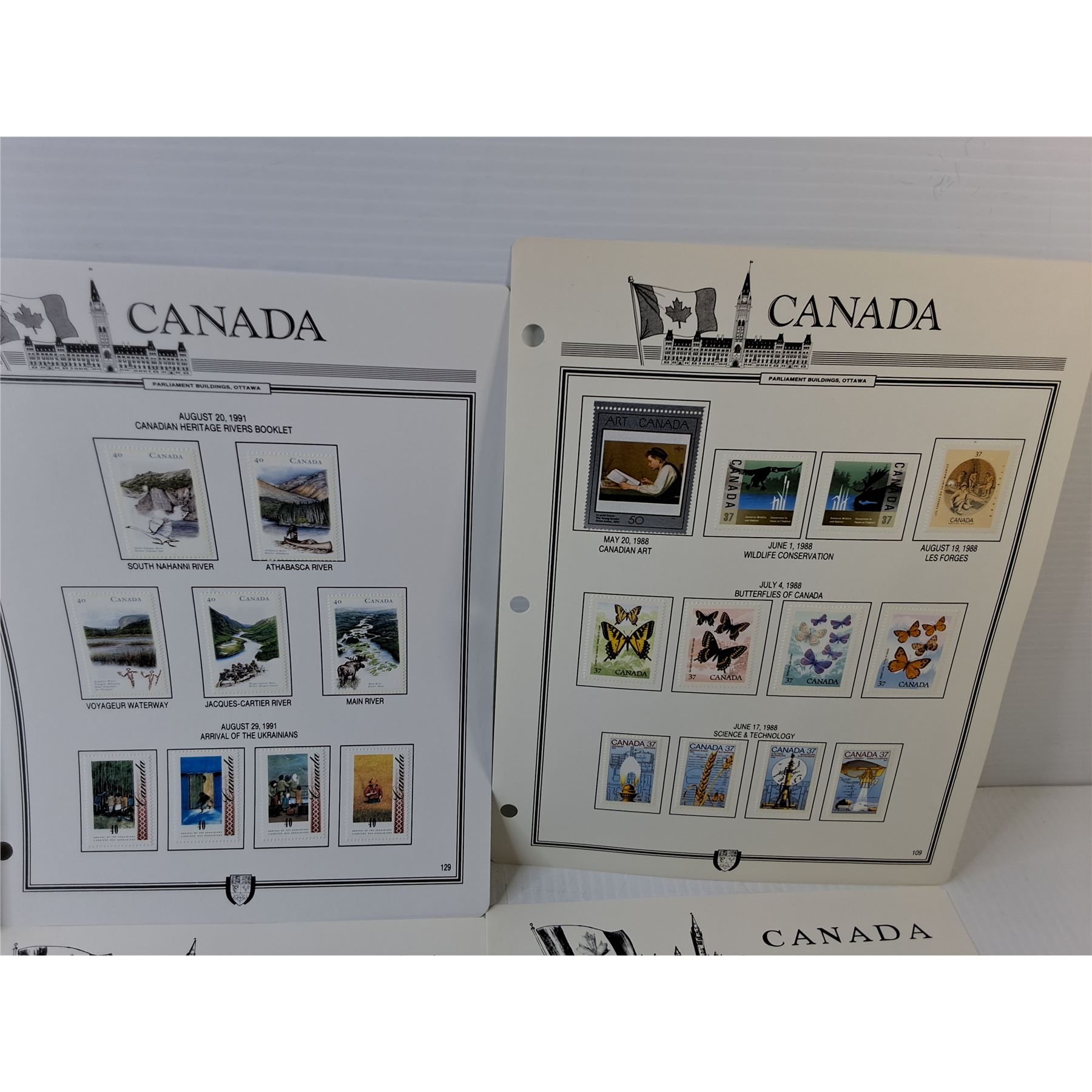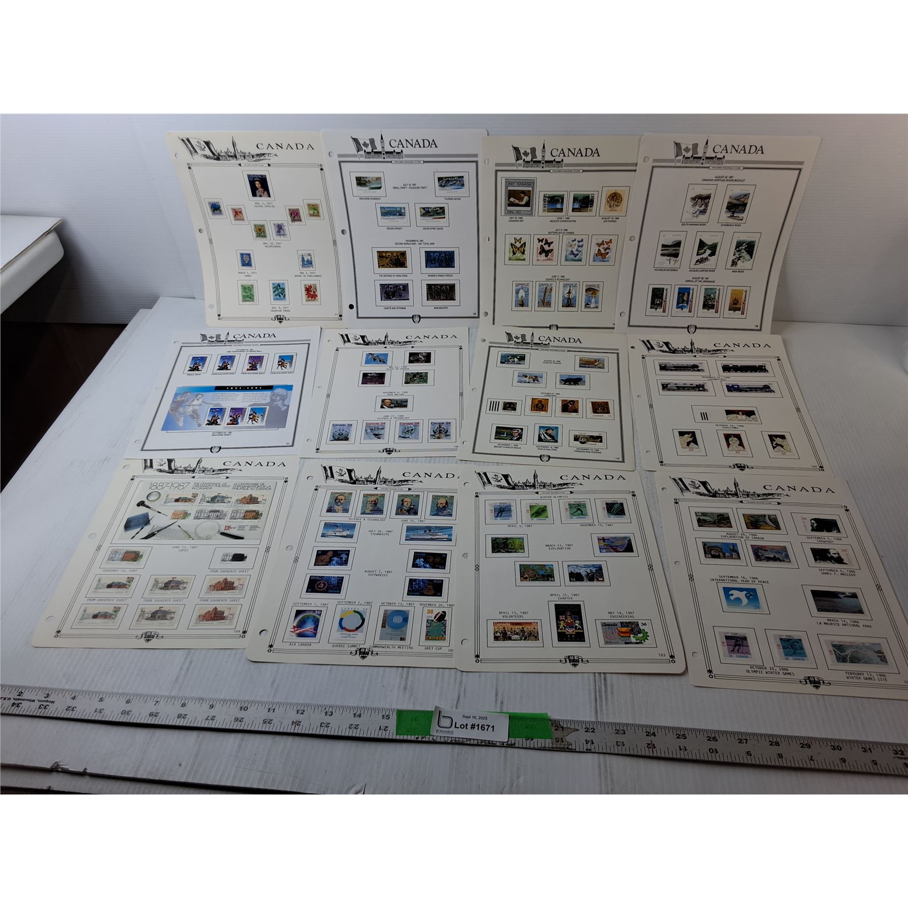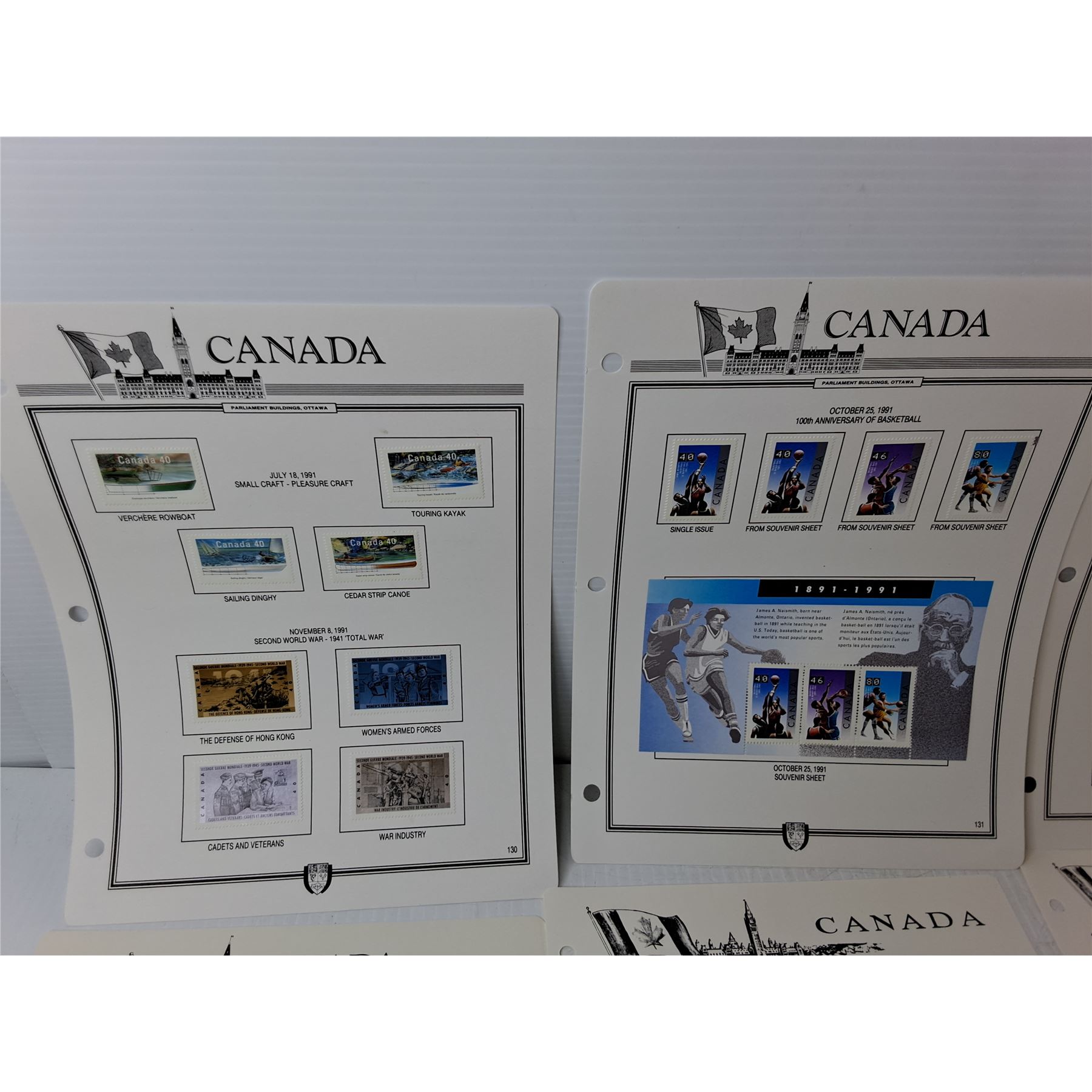 (12) Pages of 1980s/90s Canadian Stamps- Butterflies, Basketball, Misc.