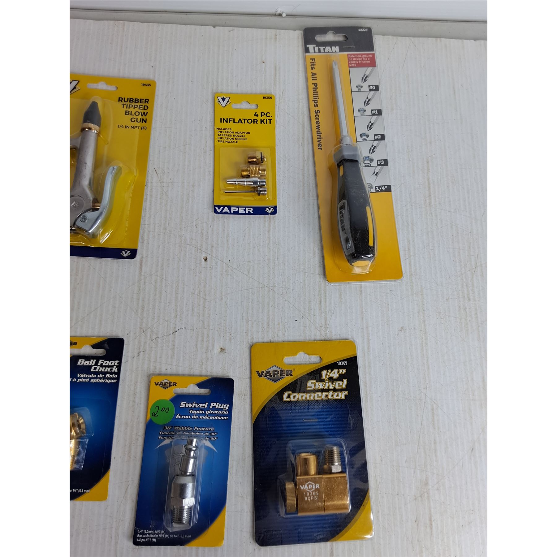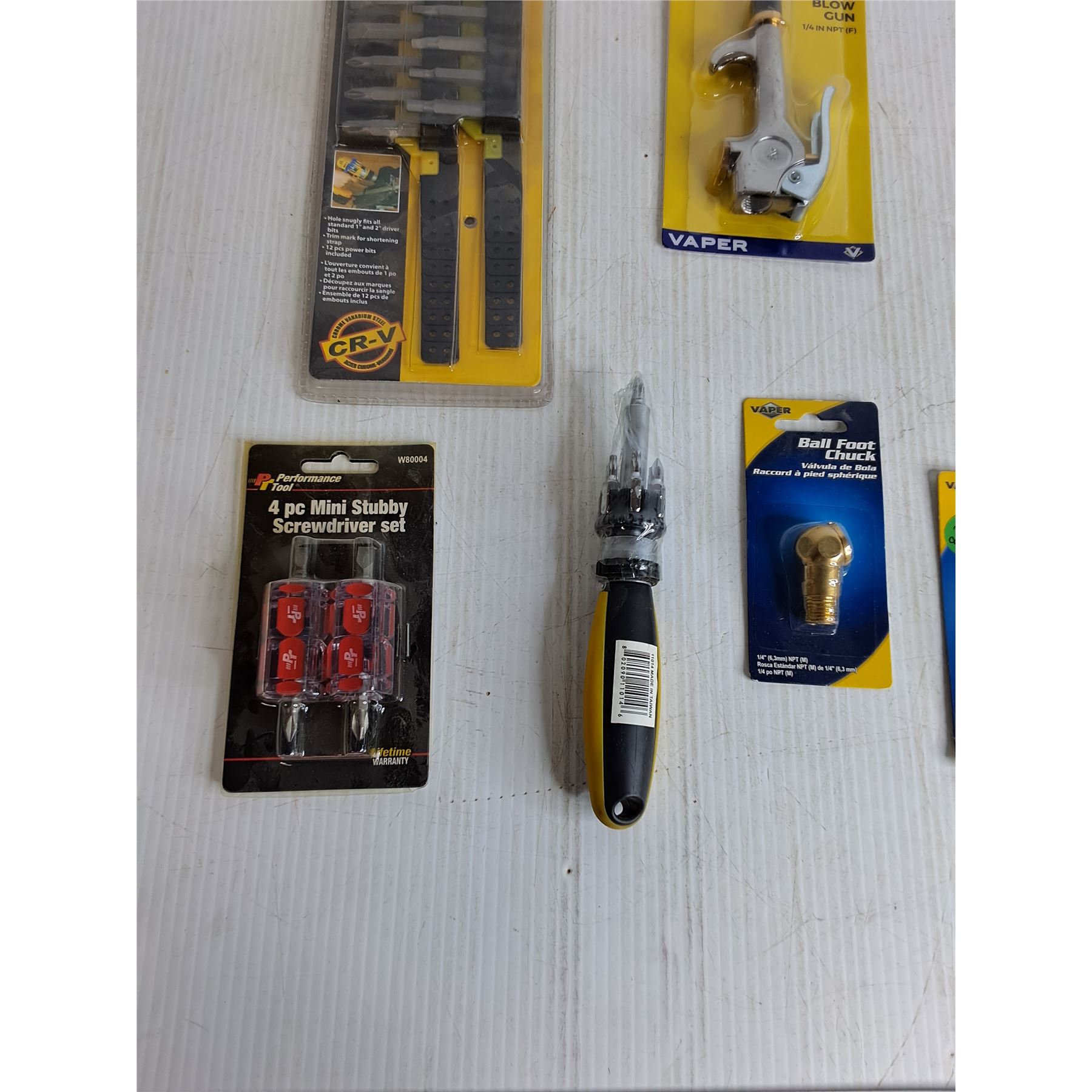 12 Pcs Screwdriver Bits, Rubber Tipped Blow Gun, Inflator Kit, Philips Screwdriver, Misc