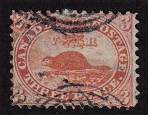#12 Perforated Pence Three Pence, Dark Orange Red,