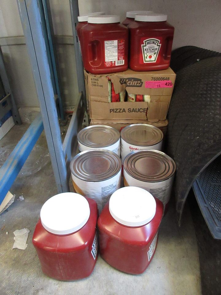 1 Case of pizza sauce, 1 case of ketchup & 10 loose assorted. Heinz Ketchup is 2019.