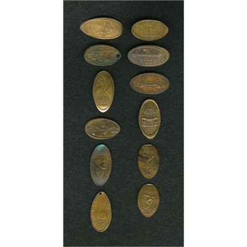 <B>12-Piece Miscellany of Elongated Coins.</B></I> This group lot contains twelve elongated pennies issued between 1901 and 1939. Some are listed by their Martin-Dow catalog numbers. Calala-2a; NYPAE-12b; D-GLE-5; WASXXX-3, and many more. Viewing of this lot is recommended.<BR><BR><b>Shipping:</b> Coins & Currency (<a target="_blank" href="http://www.heritageauctions.com/common/shipping.php">view shipping information</a>)