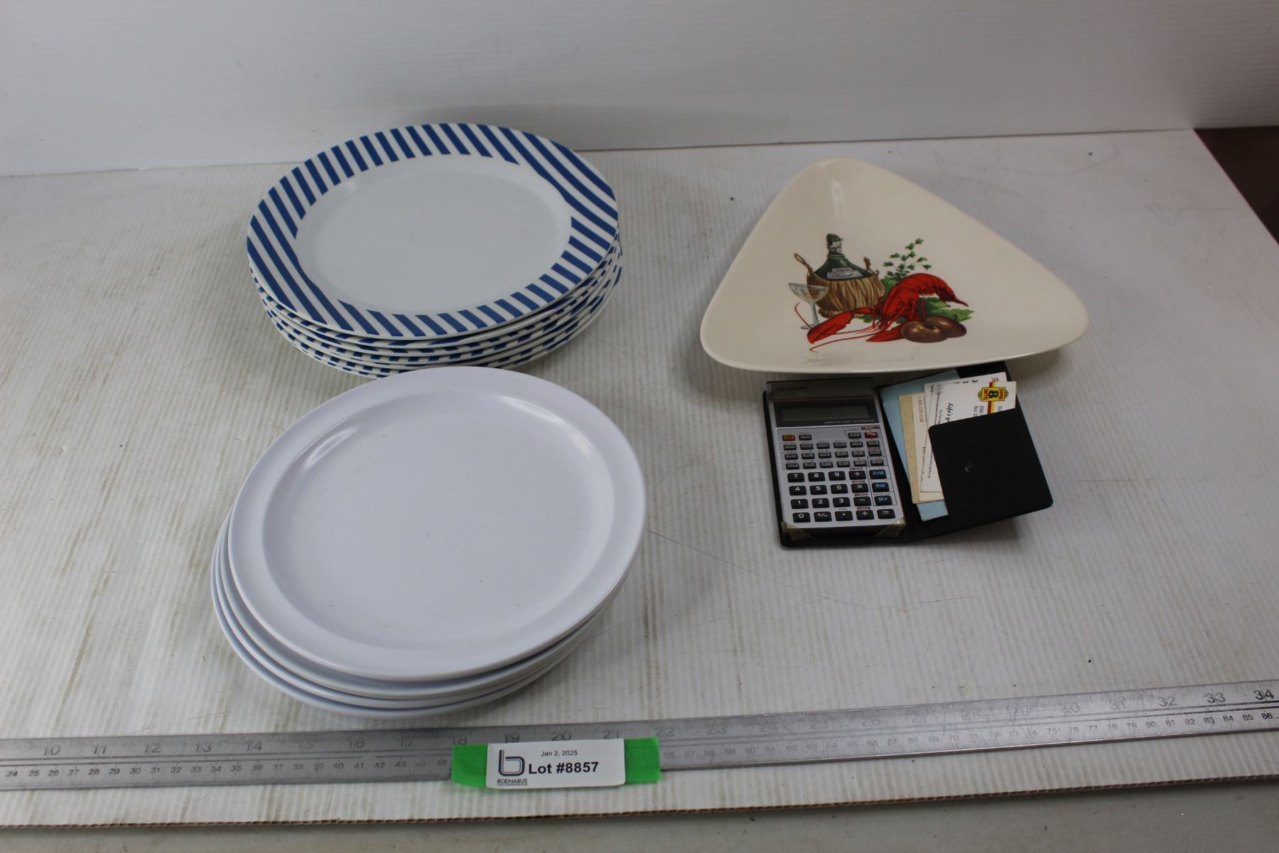 (12) Plates, Sharp Scientific Calculator- Powers On