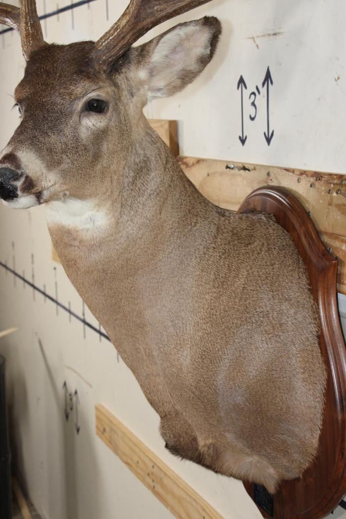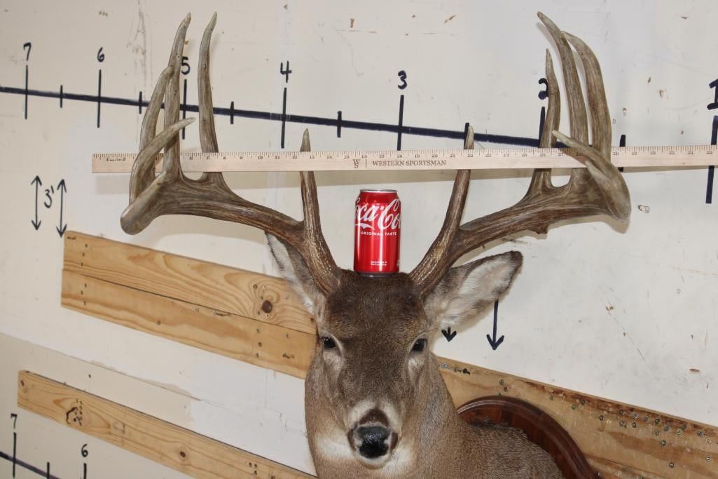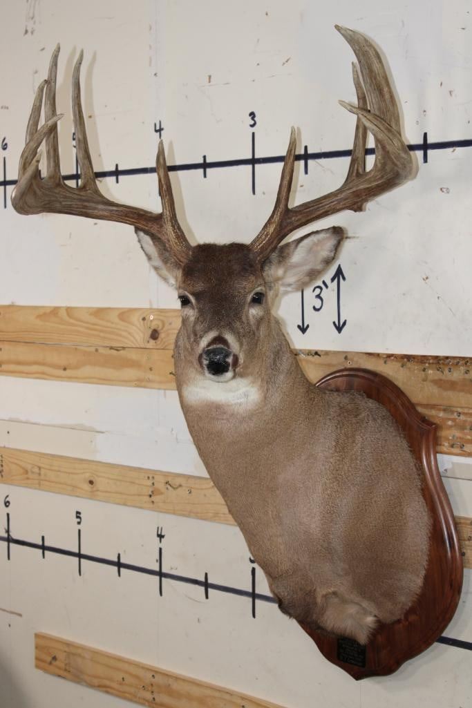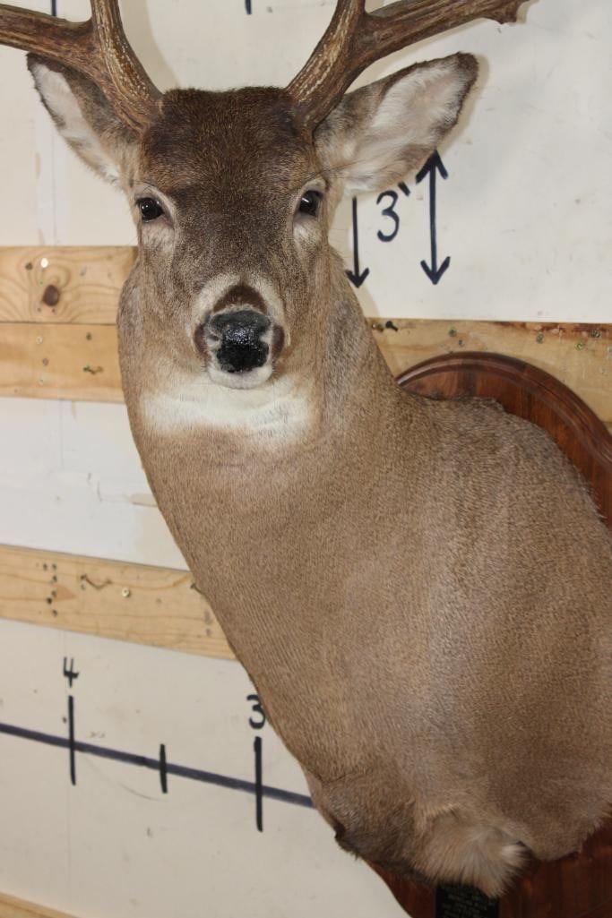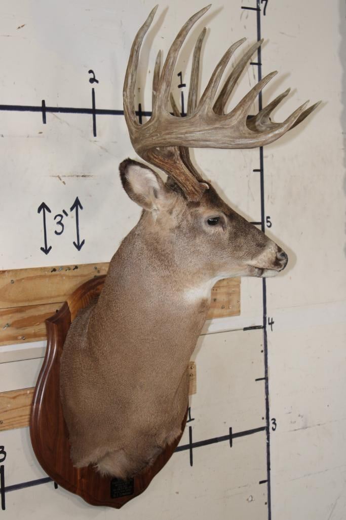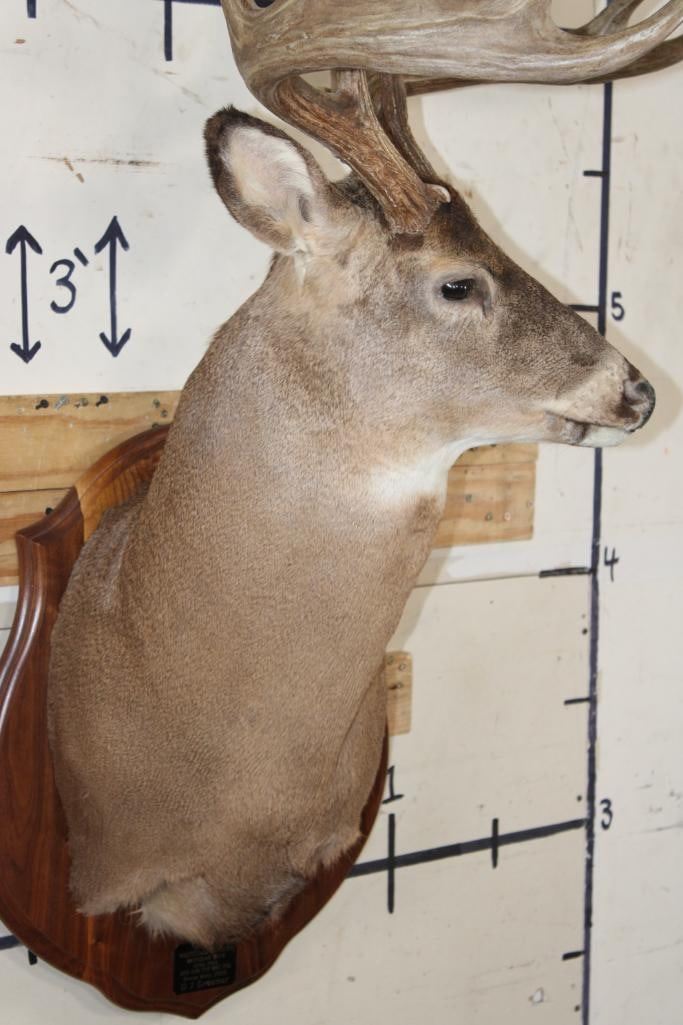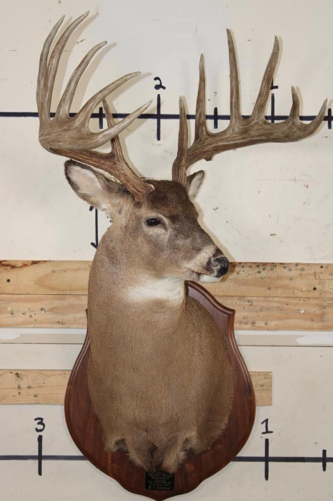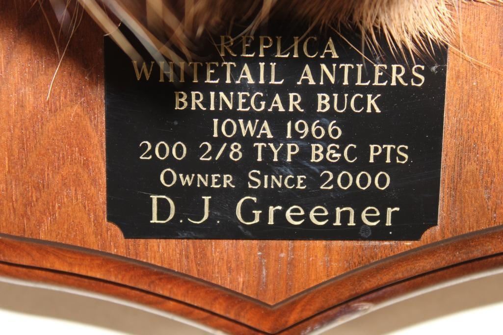 12-Point WHITETAIL DEER Shoulder Mount with a 26 3/8" Spread. The Reproduction Antlers are after "The Brinegar Buck" Taken in Iowa 1966, 200 2/8 Typical Boone and Crockett Points. COLLECTIBLE TAXIDERMY