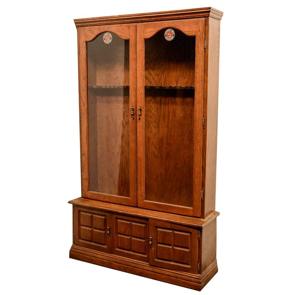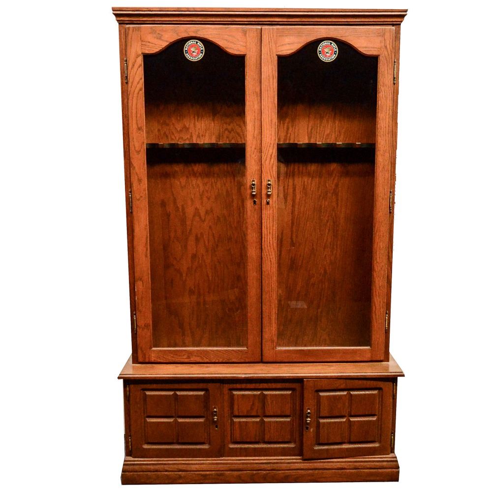 12 Position Wood and Glass Locking Gun Cabinet in very good condition.