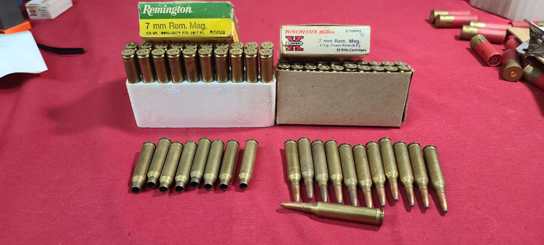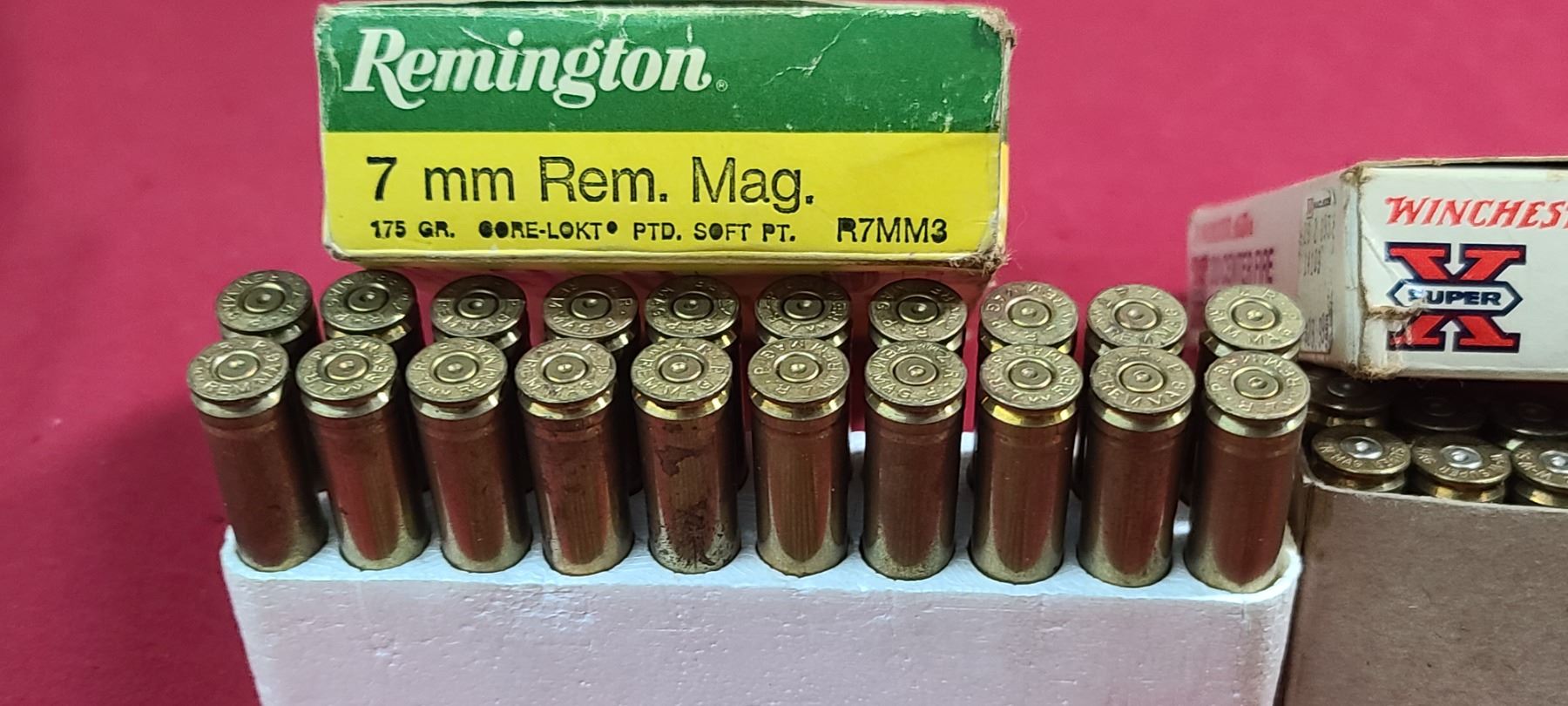 12 ROUNDS OF 7MM REM MAG AND 28 BRASS