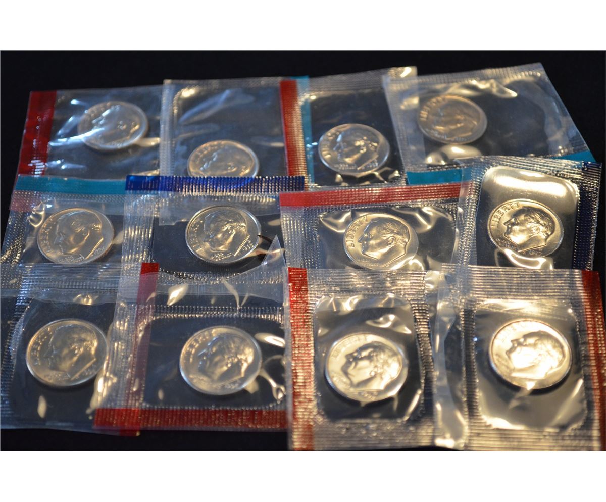 (12) Roosevelt Dimes (BU) - 1971P(2), 1971D, 1974P, 1974D, 1987P, 1987P, 1998D, 1994D, 1992D, 1993P, 1996D