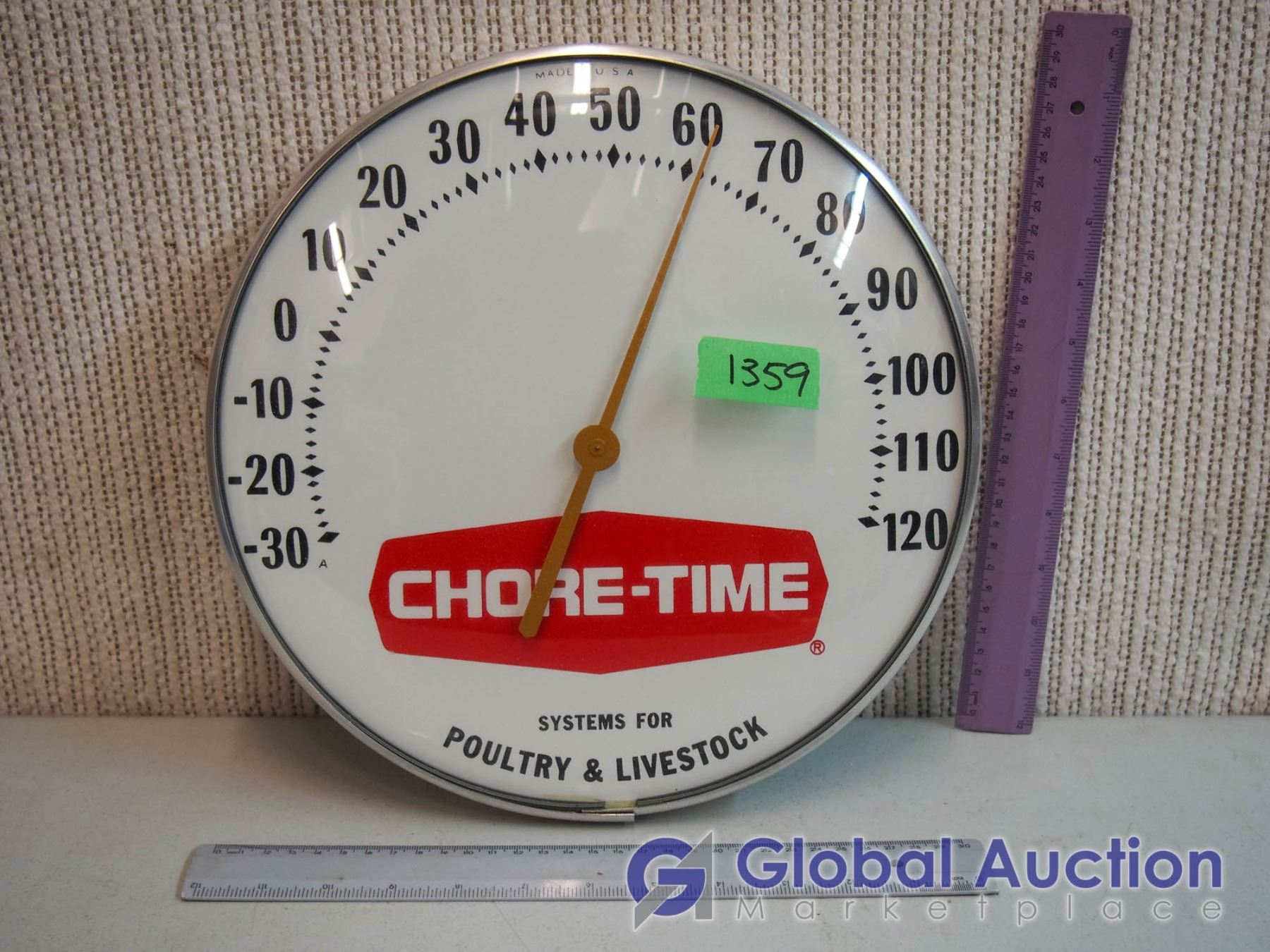 12" Round Glass Chore-Time Advertising Thermometer