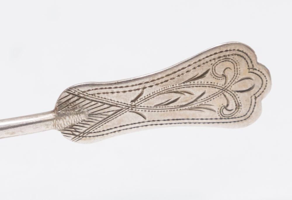 Circa late 19th century. Unmarked. Test for silver. Approx. 4 1/4" L. Approx. 2.510 ozt (77.9 grams). (6109)