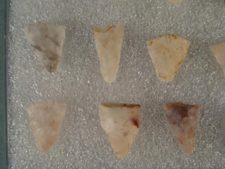 12 Small Indian Bird Point Arrowheads * * Composition: Flint, or other, in brown, white and grayLength: 5/8" to 1"