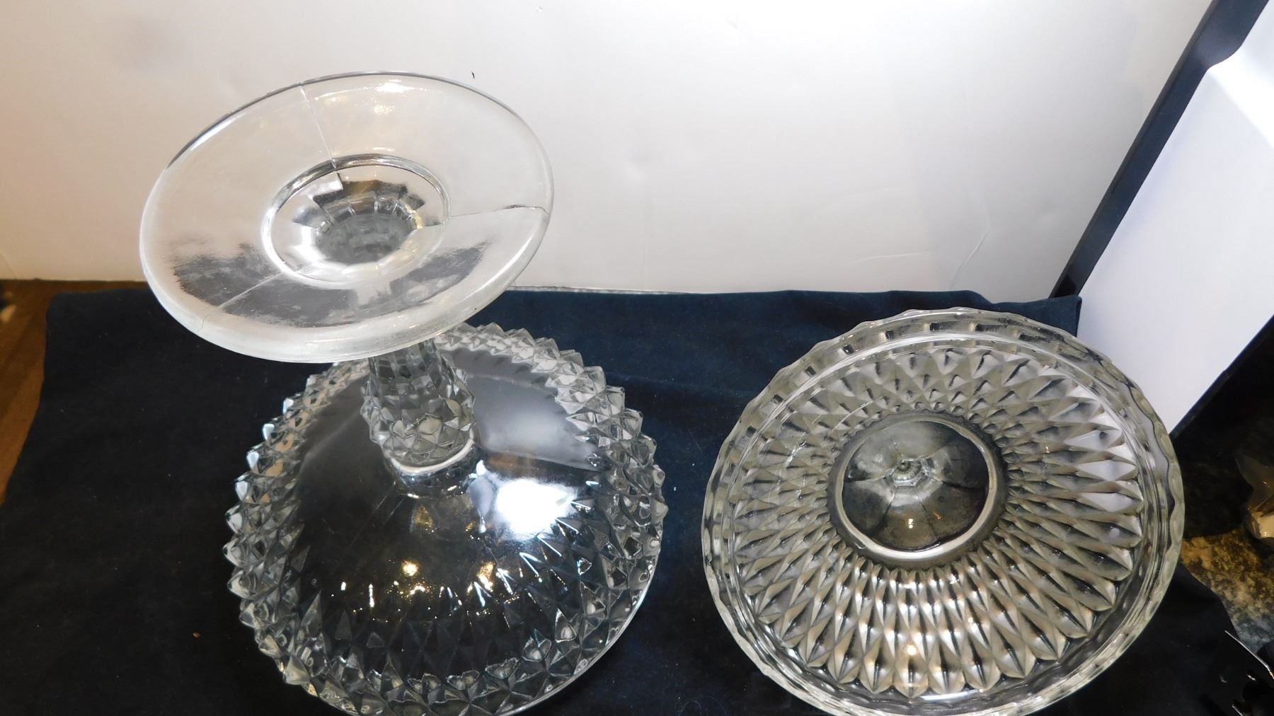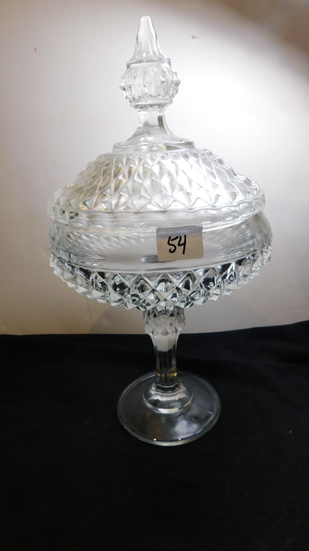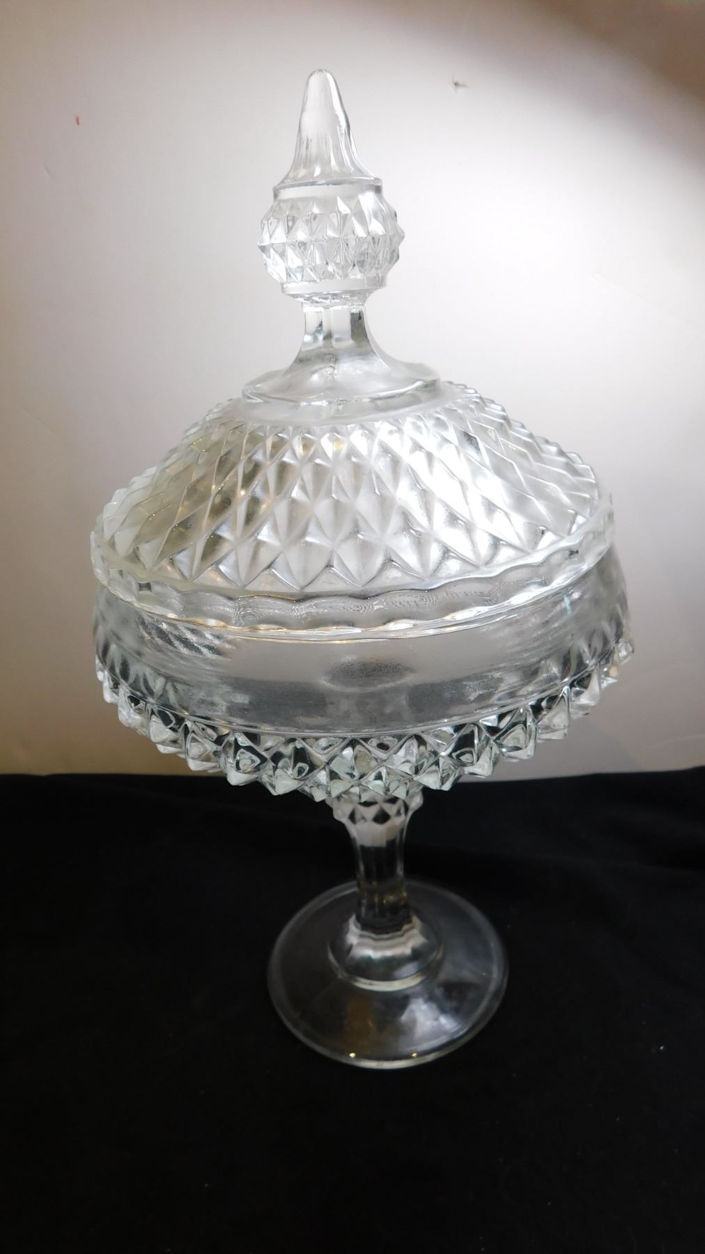 12" TALL, VINTAGE DIAMOND POINT, COVERED CANDY DISH