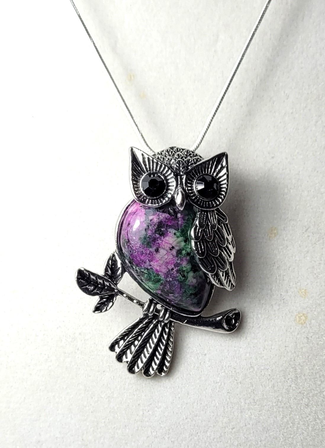 OWL ON A BRANCH PENDANT ON 18" SNAKE CHAIN. JEWELERY