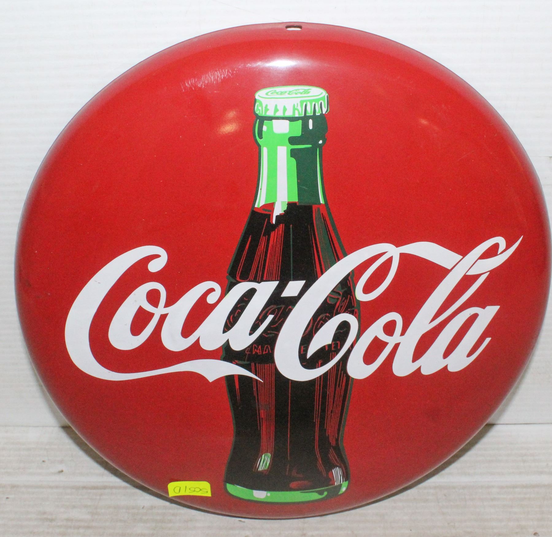 12" TIN COCA-COLA ROUND BUTTON SIGN, CONCAVE