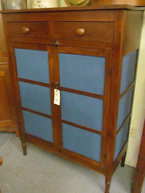 19th Century Pegged Virginia 12 Tin Pie Safe turned tapered legs, top overhanging, 2 drawers over 2 panel doors opening to three original shelf interior Tins are star pattern - have been painted 57 x 41 x 18