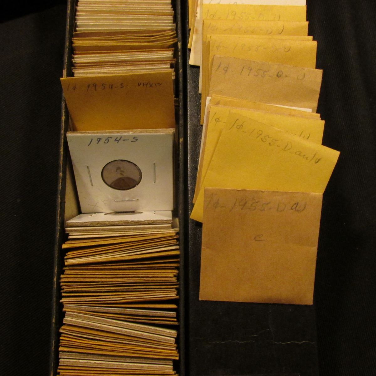 12" Two by Two Stock box full of 1952-55 High grade Lincoln Cents of which many are in manilla envelopes.