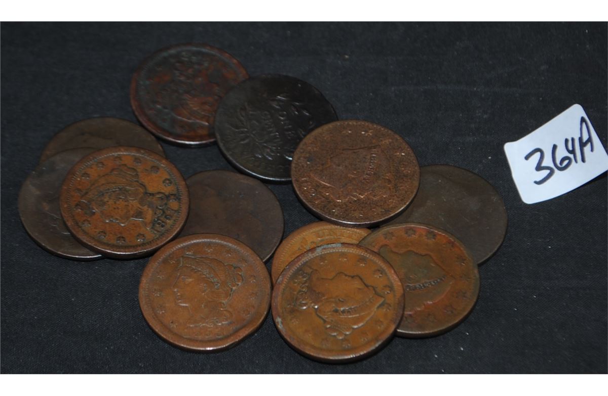 12 U.S. LARGE CENTS - 1833, 1845, TWO1853, TWO 1851, 1827, 1800, 1805, 1801 ETC - SOLD PER COIN TIMES 12