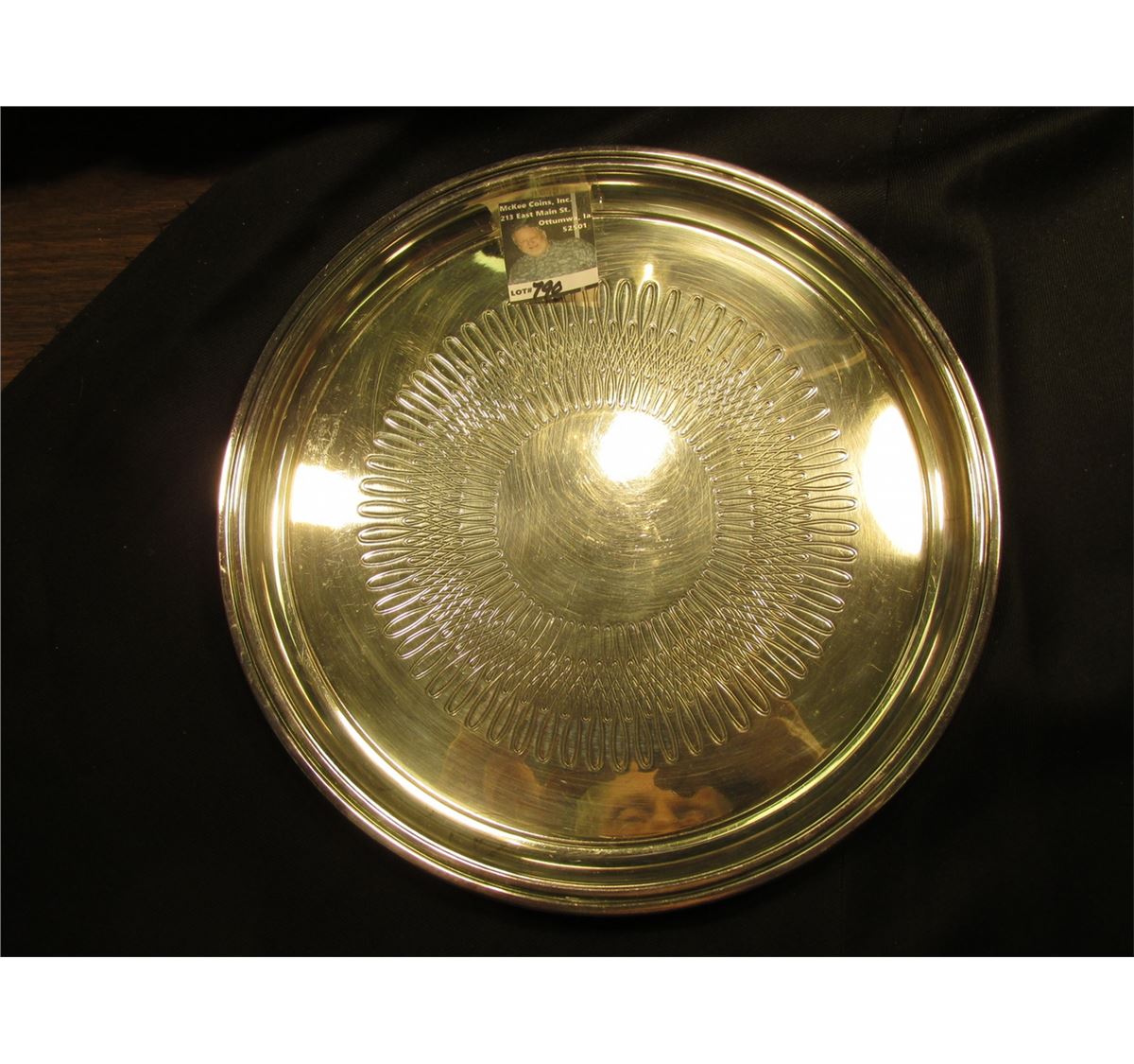 12" Unmarked (Silver-plated???) Serving Plate. Excellent condition.