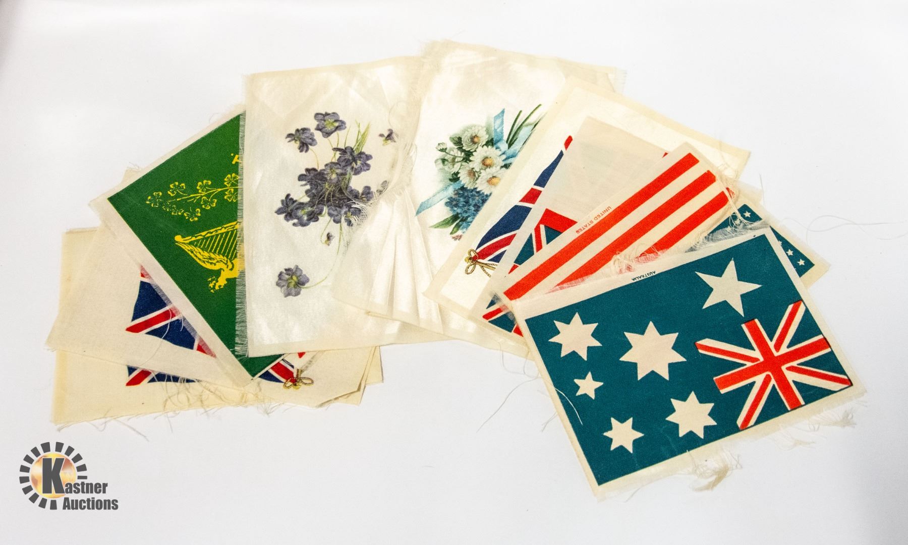 12 VARIOUS FLAGS AND FLOWERS SILK PICTURES