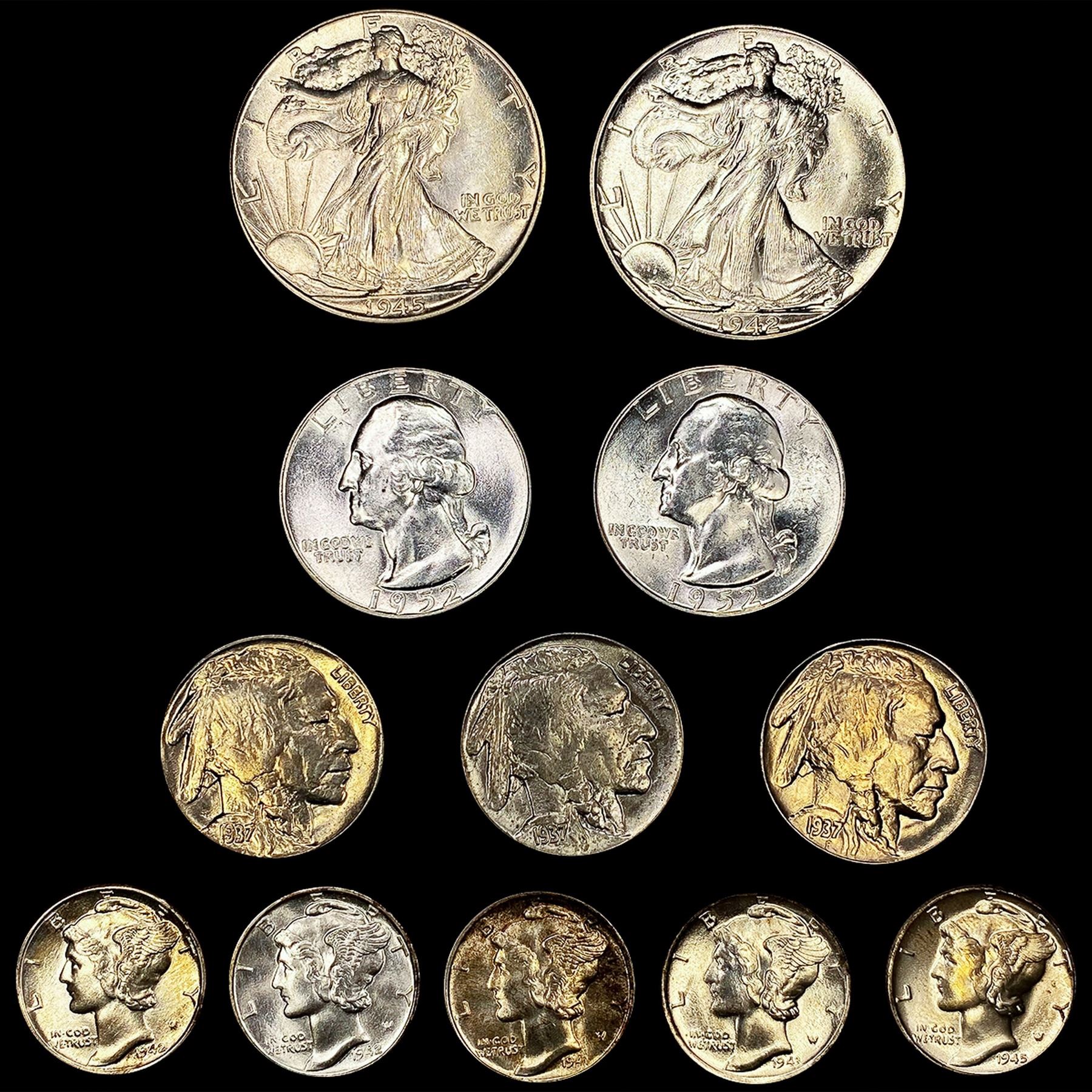 (12) Varied US Coins ((3) 1937, 1941, (3) 1942, 19