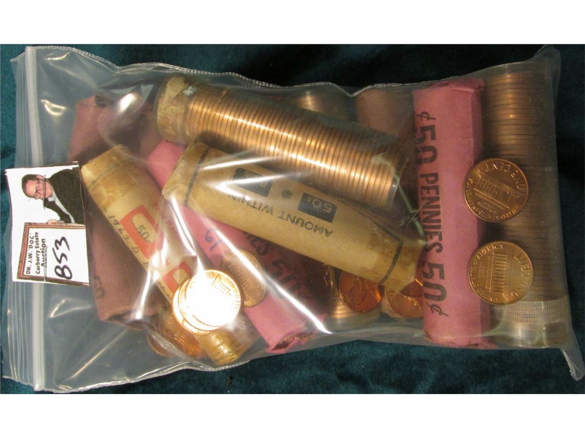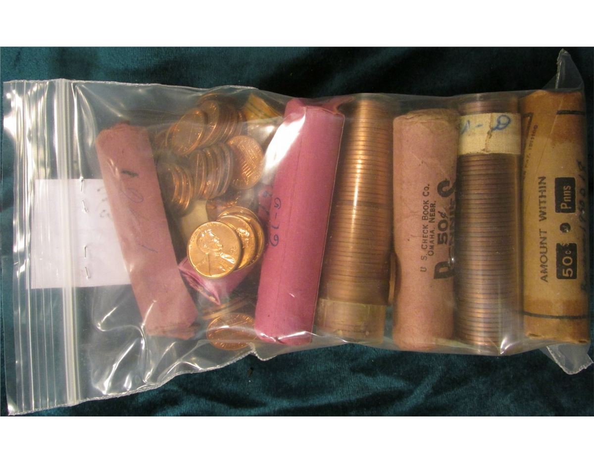 (12) Various rolls of Original Uncirculated Rolls of 1960 era Lincoln Cents, I never opened all of these, One roll is loose, one is tarnished., some could have a few carbon specks, etc.