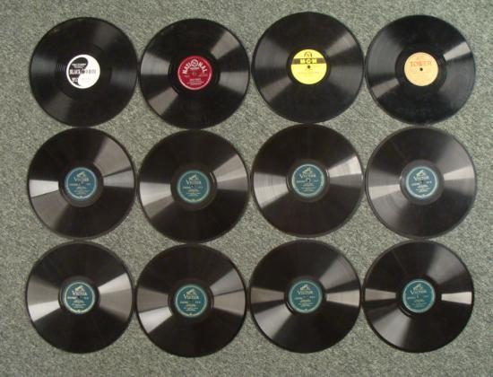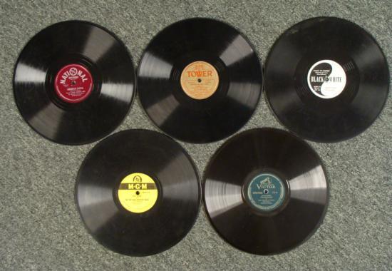 Offered her is mixed lot of tweleve vintage records. The record companies are: Black & White, National, MGM, Tower, Musical, & Victor. This is an excellent lot with a wide variety of music. The name of the records are as follows:"Tico Tico" and "Mama Yo Quiero" by Henry King and his Orchestra"Southpaw Special" and "Fuzzy Wuzzy" by Al Trace and his Silly Symphonists"Peg O' My Heart" and "On the Old Spanish Trail" by Art Lund"Rhythm on our Farm" and "Ruth" by George Winslow and his Orchestra"Hispanophone" by Professor Horace S. Chown - Lessons: 5-8, 13-24The size of the albums are 10 1/4" x 12" and the diameter of the records are 10". The records range from fair to very good used condition. Some have minor scratch marks, smudges, and wear. Spice up your life with this excellent, eclectic group of vintage records!