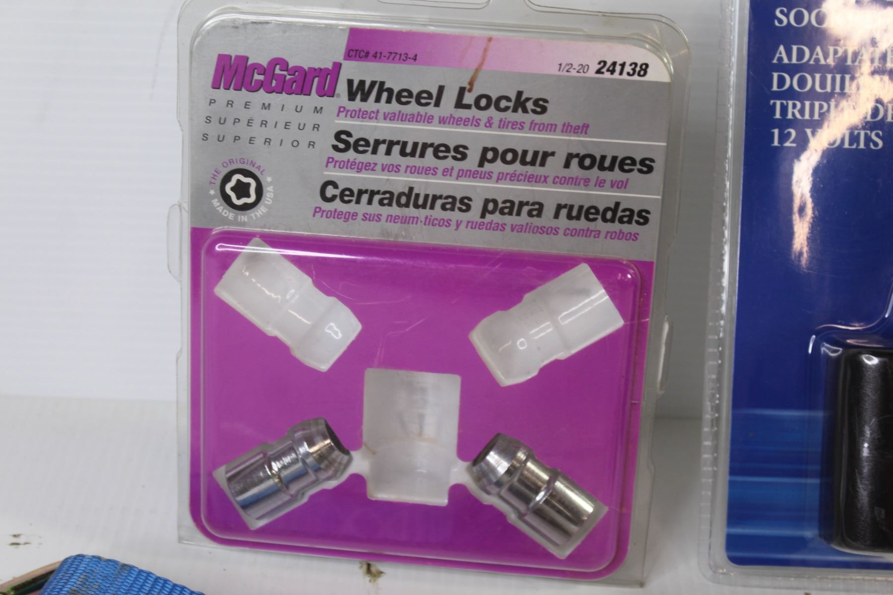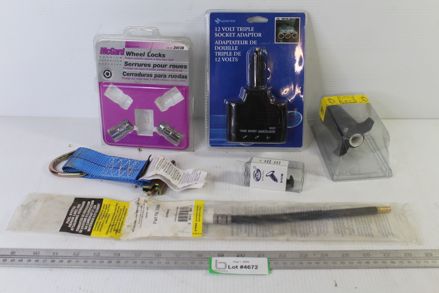 12 Volt Triple Socket Adapter - (2) Wheel locks - 7 Pole RV Plug - Erickson Strap - Fuel System Repair Line