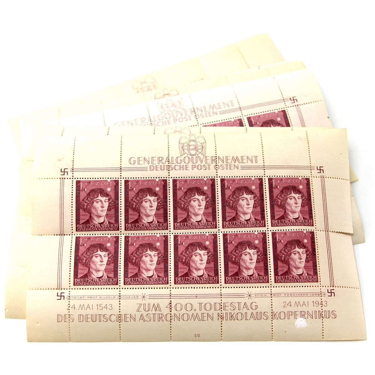 12 WWII GERMAN UNCUT STAMP SHEETS COPERNICUS Country: Germany Condition: Good.