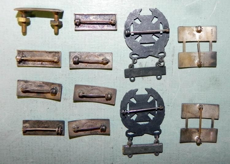 12 WWII RIFLE MARKSMAN BADGES &METAL RANK BARS-MOST STERLING---GREAT COLLECTION--MOST ARE STERLING SILVER