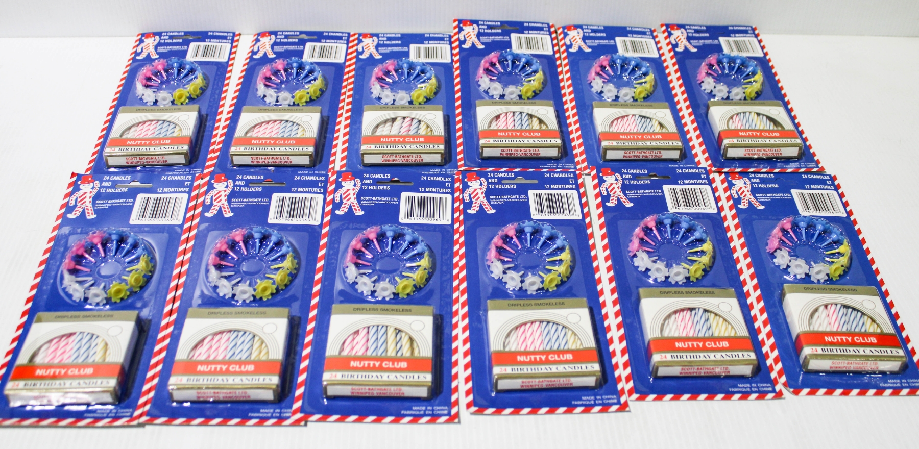 12 X 24 NUTTY CLUB BIRTHDAY CANDLES W/ HOLDERS