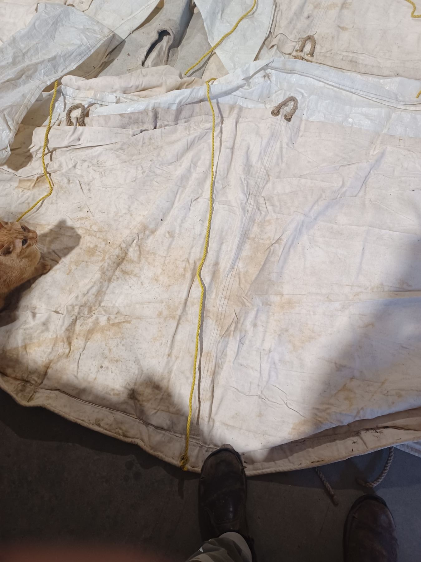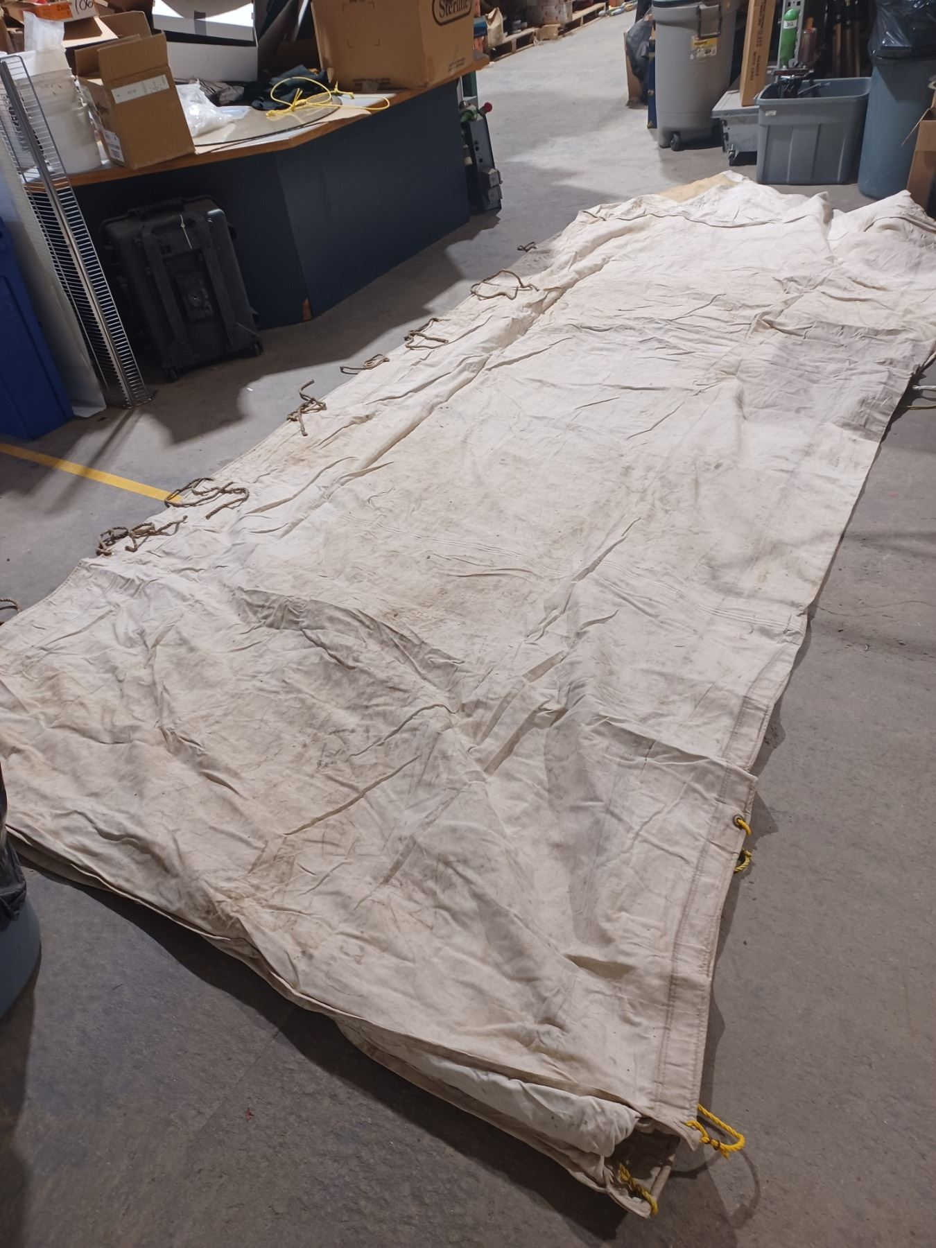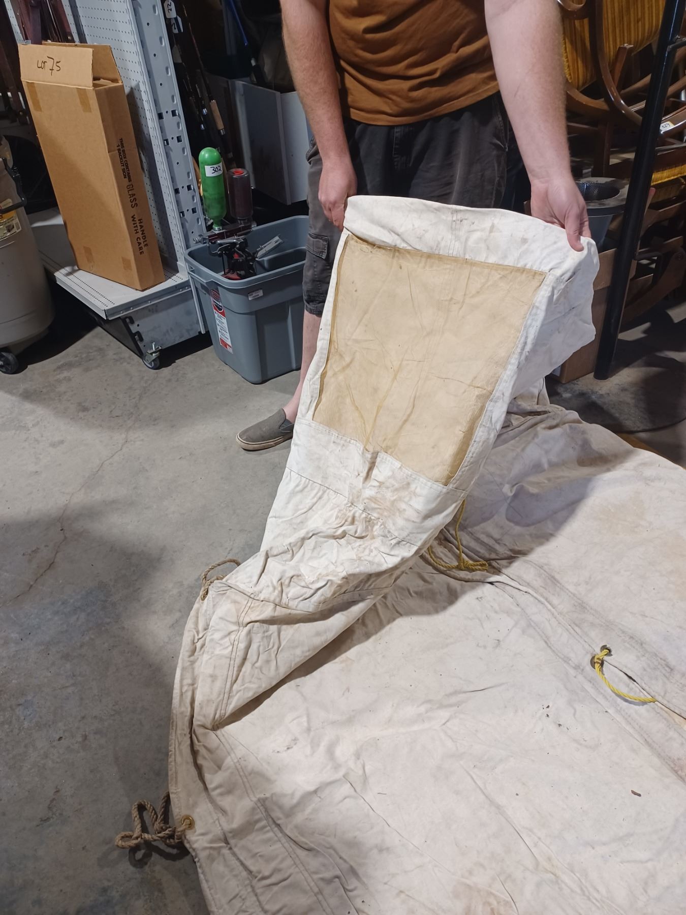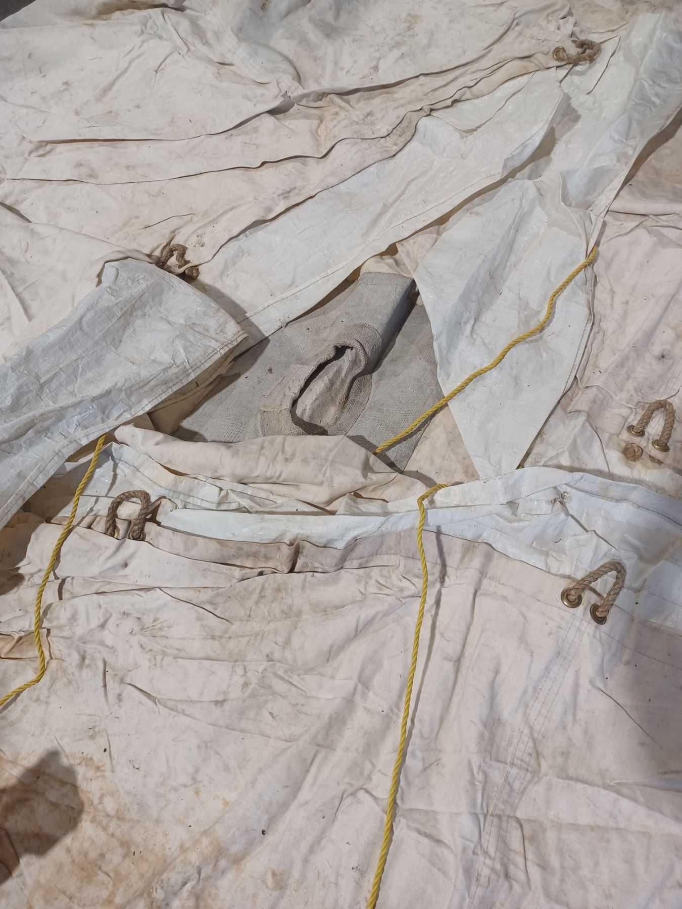 has windows - no mold - 12 x 14 Norseman 3 1/2" which gives it a peak of approx. 7' - no visible tears - and has a stove pipe ring see updated photo's
