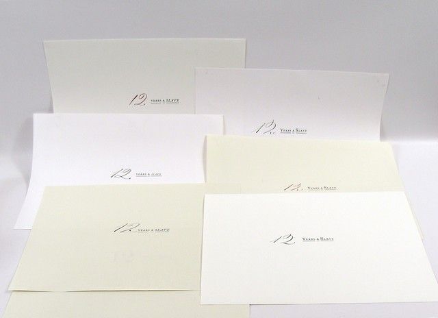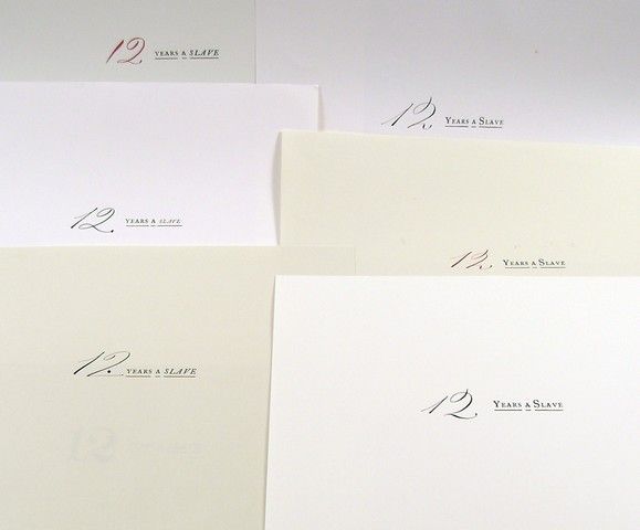 12 Years A Slave Original Opening Title Signed Artwork A film is many times defined by its special logo design. Special fonts like "Star Wars", "Indiana Jones", and "Pirates of the Caribbean", are instantly recognizable by their iconic title lettering. Virtually all title designs are now created digitally. However for many years, "title cards" were created, and then photographed. Because they were rarely saved, and the process has not been used much in many years, they have become extremely rare and collectable. Last year, Award- Winning graphic designer Antony Buonomo (www.vertigo.co.uk) was asked by Film Editor Joe Walker to create special hand drawn title cards for the multi- Award Winning "12 Years A Slave", (including the Oscar for Best Picture, Best Screenplay, Best Actor, and Best Supporting Actor, plus the Golden Globe for Best Picture, Actor and Supporting Actor). He was to present these variations on a theme to director Steve McQueen. While researching the story Buonomo found a scan of the original slave ship’s manifest that took Solomon Northup, the lead character (Chiwetel Ejiofor), down to Louisiana, and so decided to work with a design that was based on that original typography. He then combined that with the hand-written numeral (the iconic “12”), that evokes the scene in the film where Solomon uses juice from a berry to write a vital letter. Looking to emphasize the authenticity of the story, Steve McQueen and Buonomo were adamant that the final design should not be made digitally but rather completely by hand, using calligraphy and original antique rare metal type hand presses. Using these two design elements; calligraphy for the number, old-fashioned metal type for the wording, and printing onto rough old-processed paper, Buonomo created, by hand, many variations of the design. Of these many variations, McQueen selected his favorite. This chosen design was then filmed by the motion picture’s Director of Photography, Sean Bobbitt, using a special lens and only actual candle light to photograph it for the title sequence. This title and the iconic hand-written "12" quickly became an instantly recognizable and powerful symbol of not only the emotionally charged masterpiece, but of a reformation of the horrors of the dark days of American slavery. These are original designs personally designed and hand-written by Buonomo for the title, and selected by Buonomo to show the range of variations he crafted to come up with the now famous “12 Years A Slave” title and logo. These prints are therefore absolutely one-of-a-kind. There are seven on the special paper and one early original variation on artist paper. Antony Buonomo has signed all eight original motion picture prints. This rare collection also comes with a personal Letter of Provenience from Antony Buonomo. Original artwork is 17.5"x12.5".
