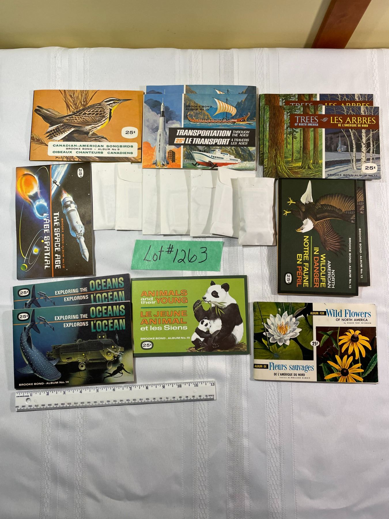 (1) Album #9 - Canadian - American Songsbirds (2) Albums #10 Trasportation Through The Ages (2) Albums #11 Trees of North America (1) Album #12 The Space Age (2) Albums #13- North American Wildlife in danger (2) Album#14 Exploring the Oceans (1) Album #15 Animal Their Young (1) Album Wild Flowers of North America
