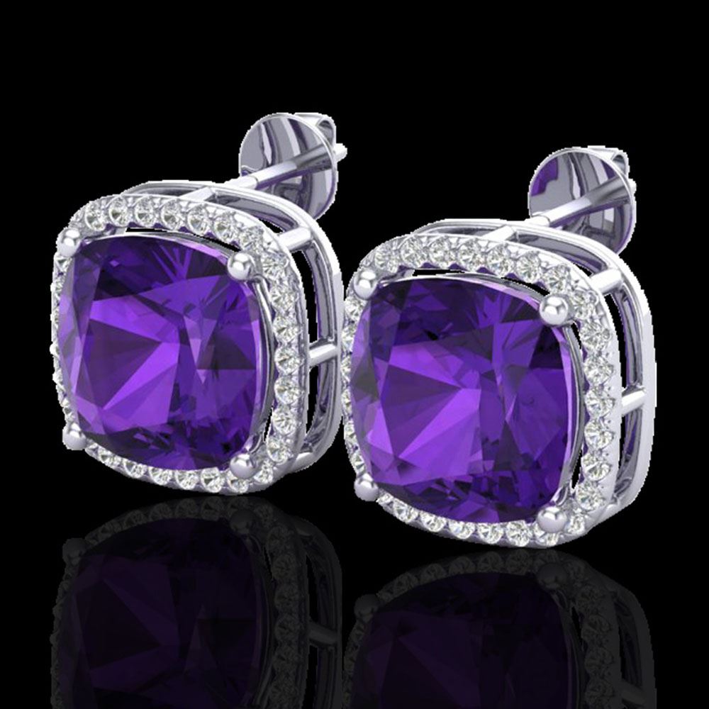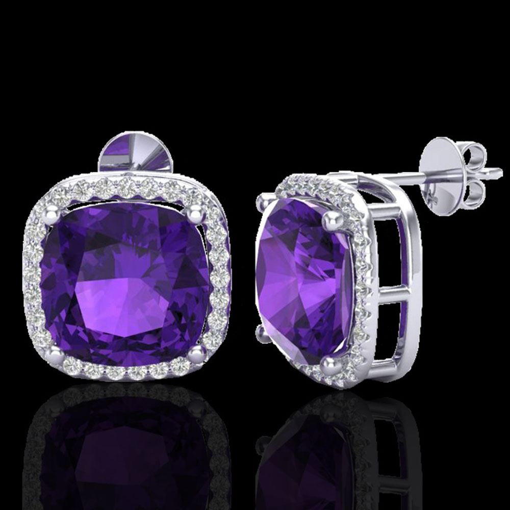 REF-88R2K - SKU: 23055 ---- 12 ctw Amethyst & Micro Pave VS/SI Diamond Earrings 18k White Gold