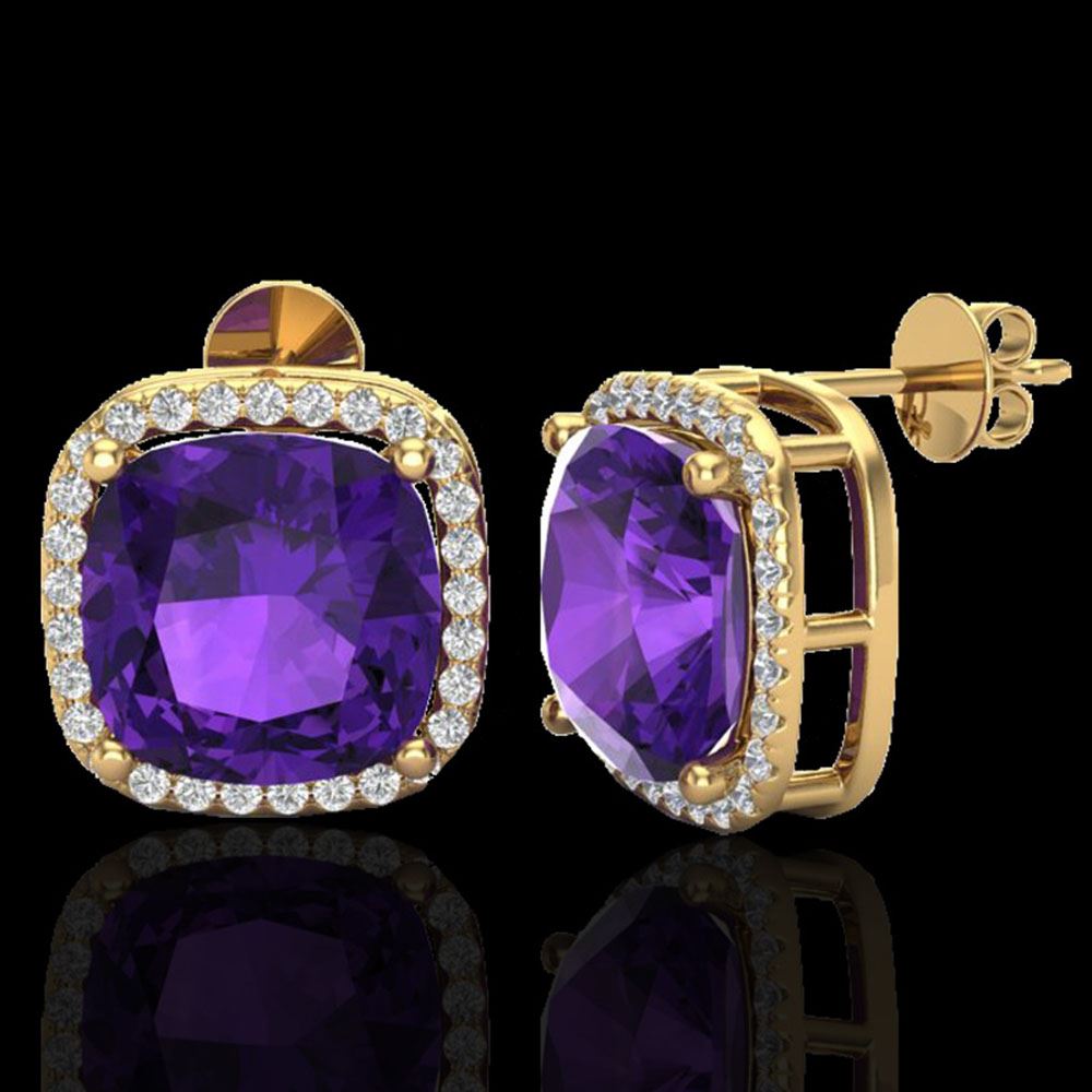 REF-88Y2X - SKU: 23057 ---- 12 ctw Amethyst & Micro Pave VS/SI Diamond Earrings 18k Yellow Gold